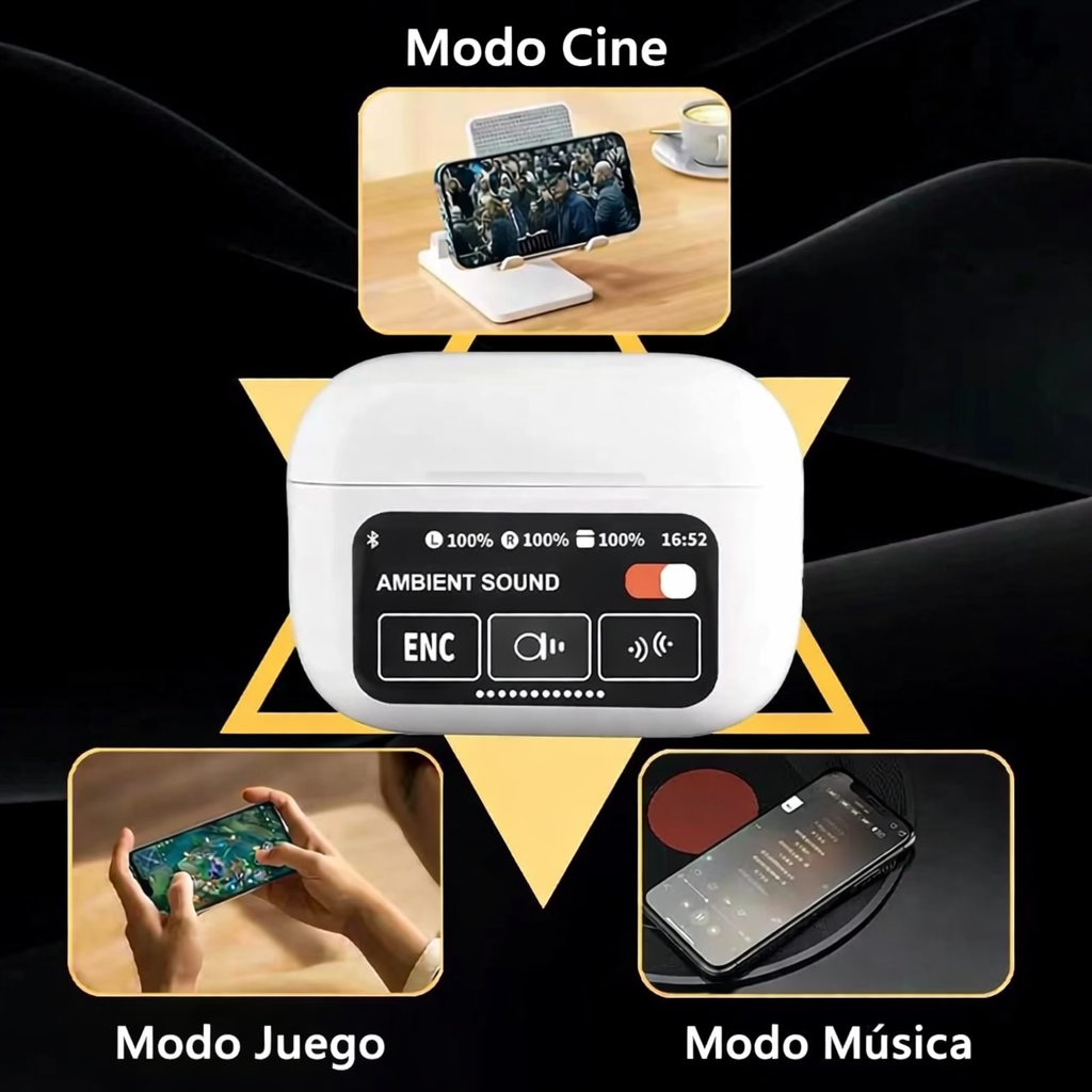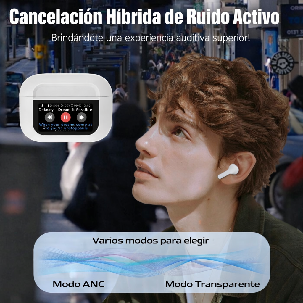 Ideal para música, llamadas, reuniones, gaming y gym. Cambia entre ANC y sonido ambiental en segundos, y controla todo desde su pantalla táctil 📲🎮🏋️
